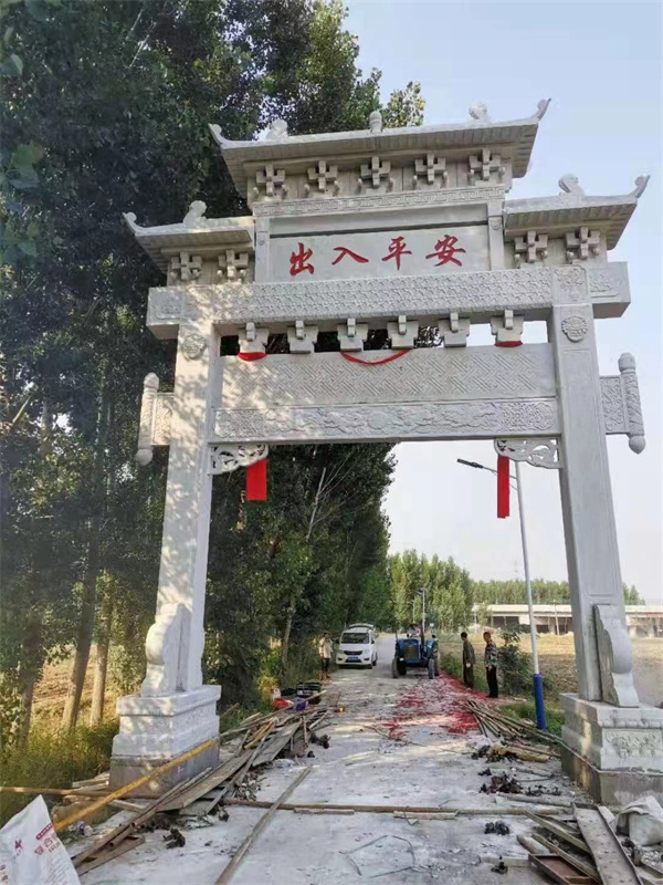 石雕牌坊的组装顺序先把侧门的底梁、匾、上梁先后组装好后,然后把两个窗门的底梁、匾、边梁板组装,后边组装侧门梁板。终究石牌坊建筑施工地是村庄入口,路窄并不时有车通过,我们应该充分考虑把石雕牌坊正中间留出间隙。为了方便少移动、拆卸脚手架,把边门的古建筑斗拱和瓦片组装好之后才持续组装侧门梁板上的匾。